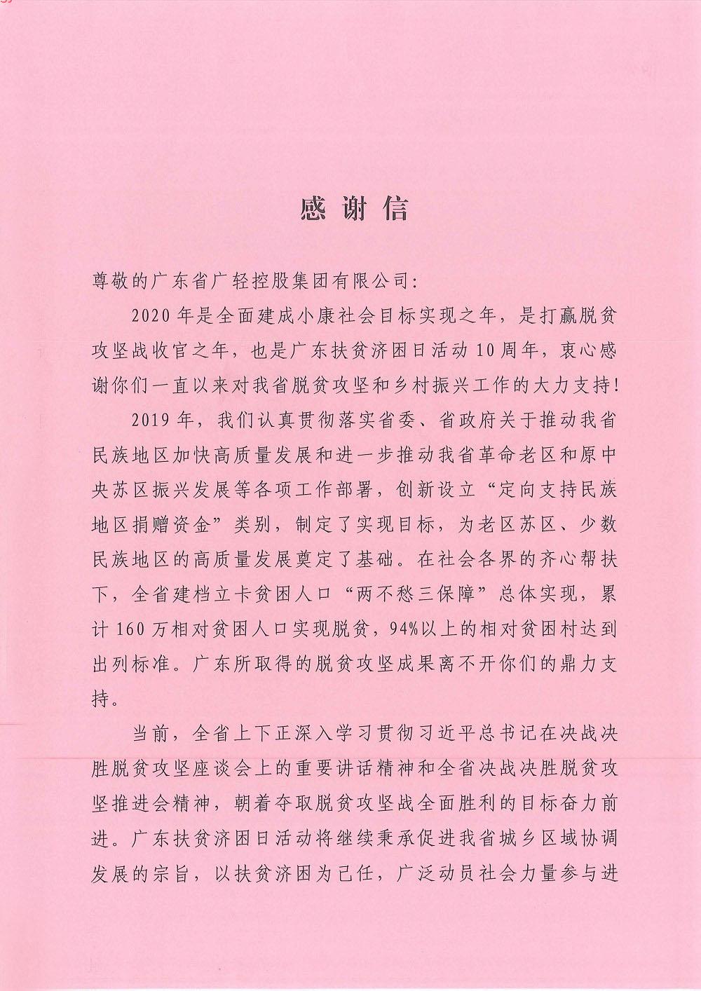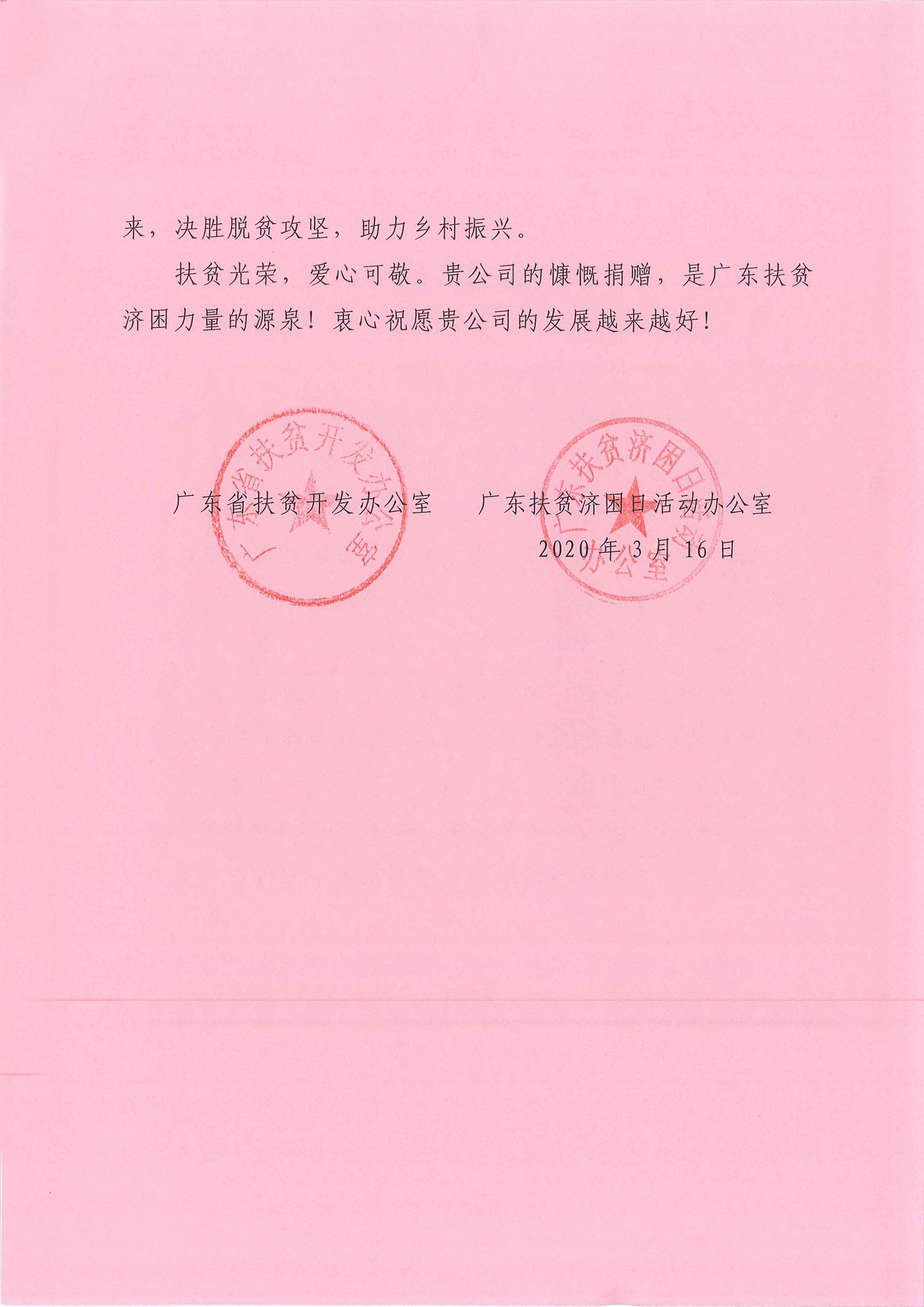 广东省扶贫开发办公室、广东省扶贫济困活动办公室感谢信感谢信
